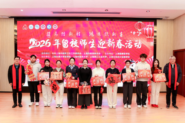 新岁序开,万象始新。恰逢在今年“立春”之日2月4日,由上海市教卫工作党委、上海市教育委员会指导,上海健康医学院主办的“骏马踏新程·鸿运跃新春”2026年师生迎新春活动在学校隆重举行。上海市教育委员会一级巡视员陈睦,校党委书记郭永瑾、校长吴韬,校党委副书记、副校长王庆华出席本次活动。上海交通大学医学院、上海中医药大学、上海第二工业大学、上海立信会计金融学院及我校师生代表共计200余人共贺新春佳节,共话校际发展。