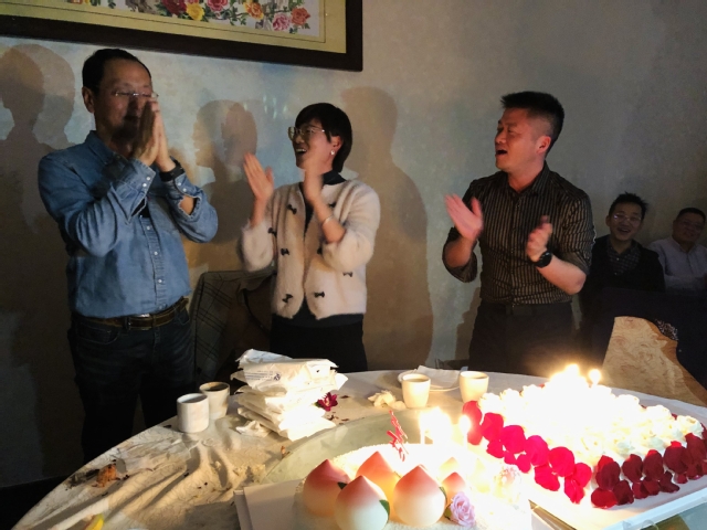 为了营造团结有爱、积极向上的温馨氛围,传递“图信”温度,本次活动还为本月即将退休的唐坚刚老师举办了欢送暨庆生活动,部门工会提前准备了蛋糕。晚餐很简单,但氛围很欢乐。席间,微微烛光之下,全体人员齐唱生日歌,唐老师一脸笑容地许愿、吹灭蜡烛,欢乐和幸福洋溢在每个人的脸上。唐坚刚老师非常感动,表示退休后会继续关注学校和图信的发展,作为一名党员,退休不褪色,会尽自己所能继续发光发热,为社会多做贡献,发挥党员先锋模范作用。