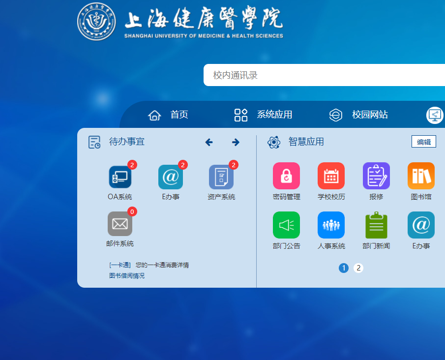 进入“上海健康医学院”官网——“智慧门户”——“图书借阅情况”