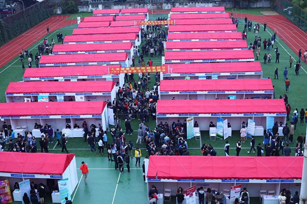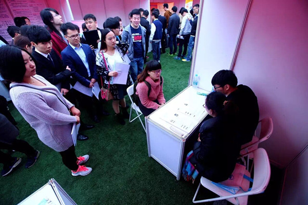 11月20日上午9点,学校2016届毕业生大型校园招聘会在杨浦校区足球场顺利举行。这是学校成立后的第一场大型招聘会,来自全国各地的350余家单位来校揽才,提供了4000余个招聘岗位数。副校长曹蓉蓉、相关学院院长、书记和辅导员等来到招聘会现场,了解情况并与用人单位亲切交流。