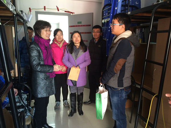 12月4日中午,副校长曹蓉蓉率学生处资助工作负责人、学院党总支副书记和辅导员,走进学生公寓,对我校贫困新生进行了亲切慰问。