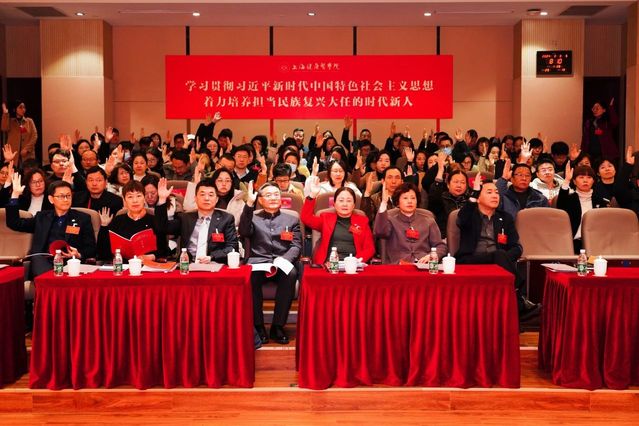 大会号召,全校教职工在党委的坚强领导下,以习近平新时代中国特色社会主义思想为指导,深入学习贯彻落实党的二十大精神、习近平总书记关于教育和卫生健康的重要论述、考察上海重要讲话精神,贯彻实施教育强国建设规划纲要,坚持稳中求进,以进促稳,先立后破的总基调,树牢“教”为“科”服务、“教”为“产”育人导向,以时不我待、只争朝夕的精神状态和攻坚克难、拼搏奋进的实际行动,将思想和行动统一到学校的动员部署上来,落实到学校事业发展的各项工作中去,以高质量党建引领学校事业高质量发展,促进新质生产力的形成、生长和发展,为把我校建设成为高水平、全健康、国际化应用技术型医学院再续新篇章,再创新辉煌!