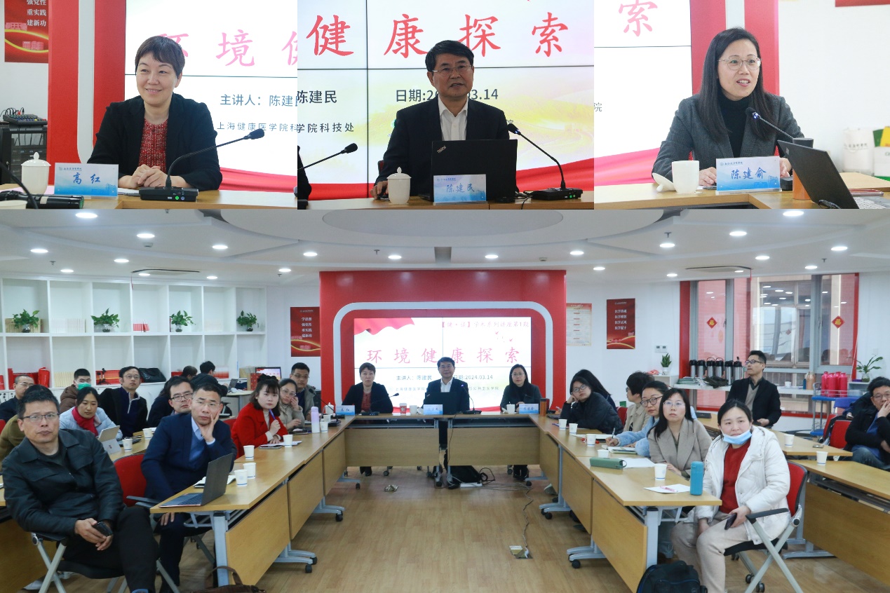 2024年3月14日下午,我校科技处和健康与公共卫生学院在北苑1号楼共同主办主题为“环境健康探索”的第1期“健·谈”学术系列讲座。本期特邀欧洲科学院院士、复旦大学特聘教授陈建民前来主讲,校党委副书记、纪委书记高红、科技处副处长陈建俞、各学科带头人以及来自学院、附属医院的一百多名教师和医生们线上线下同步聆听了本次讲座。