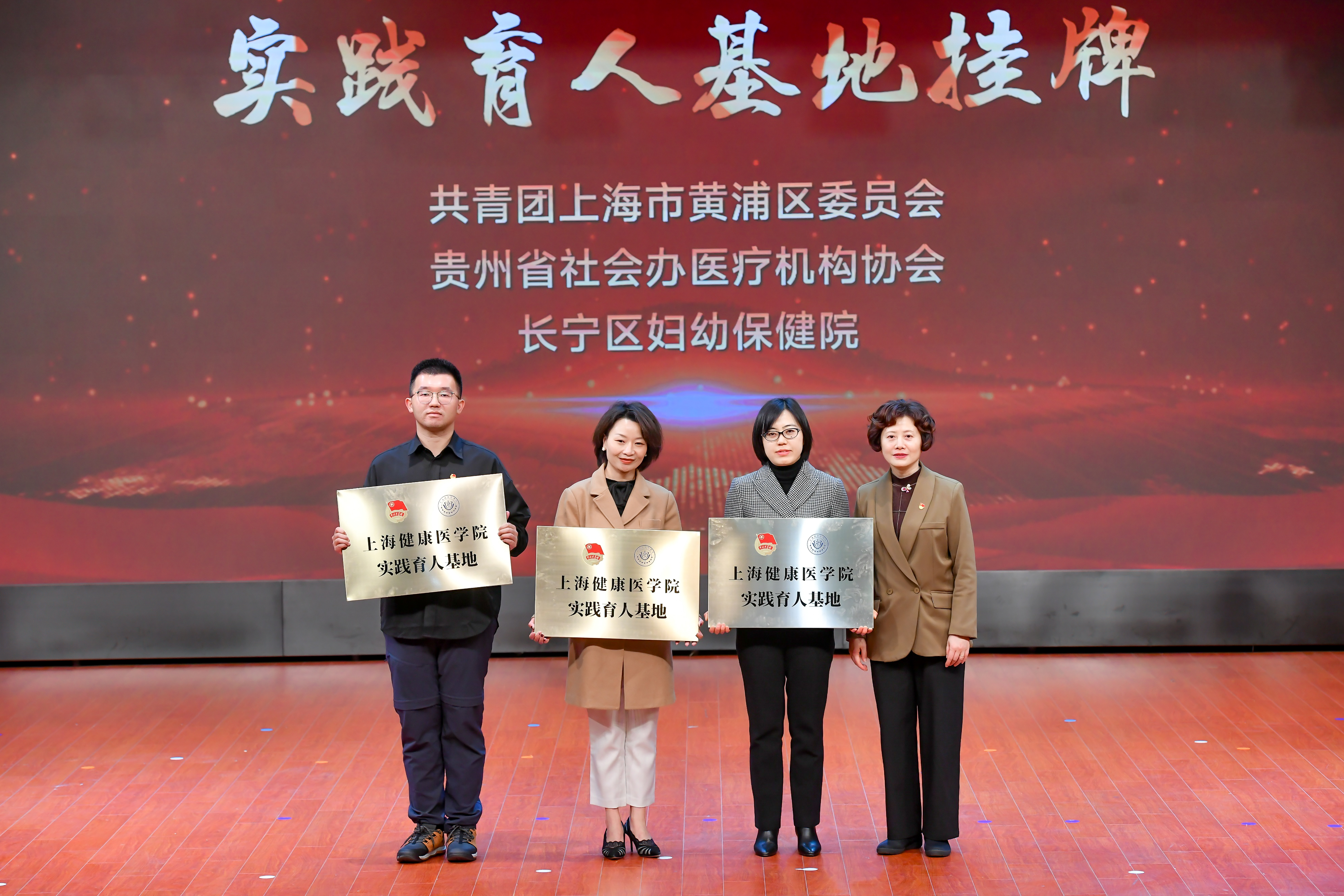 在由校大学生艺术团嬿婉舞蹈队带来舞蹈《奔跑的青春》后,唐红梅为共青团上海市黄浦区委员会、贵州省社会办医疗机构协会、长宁区妇幼保健院实践育人基地授牌。进一步推动医学与人文的深度交叉融合,扎实推进医学人文教育实践,不断强化实践育人功能,切实提升广大学生的医学综合素养。