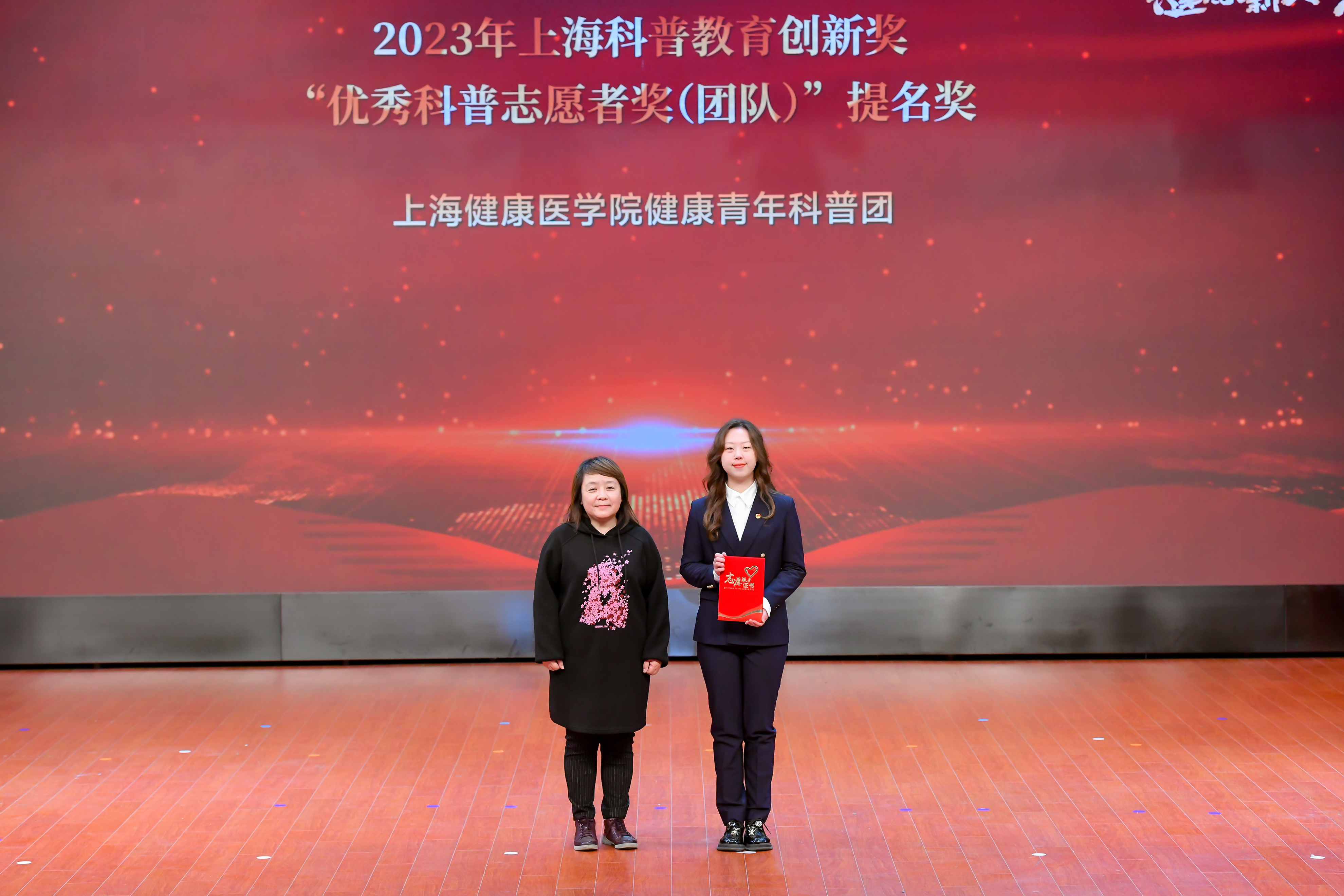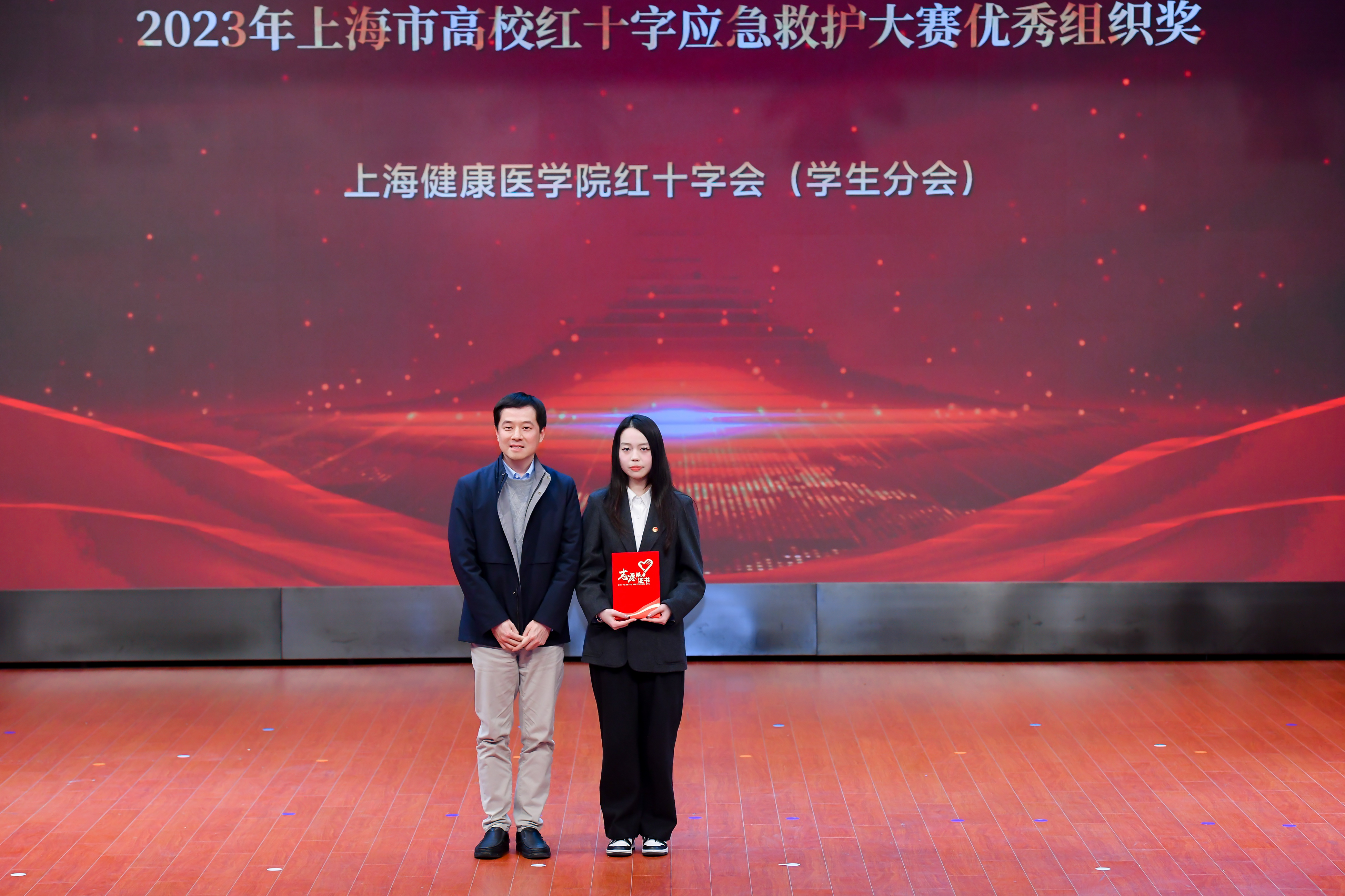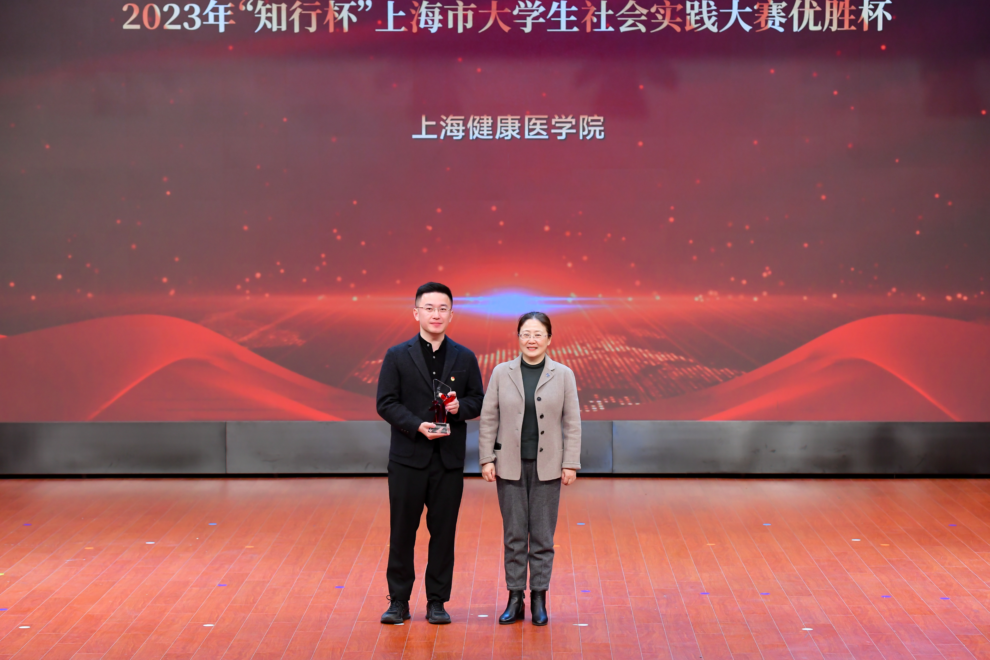 社会实践是大学生奉献才智、辛勤劳动、了解社会的广阔舞台,健康学子们带着问题调研、带着思考实践,在实践中淬炼青春、在逐梦中成长成才,涌现出一批表现优秀的集体和个人。大会表彰了国家级荣誉奖项:2023年全国大中专学生志愿者暑期文化科技卫生“三下乡”社会实践活动优秀品牌。市级荣誉奖项:上海市“知行杯”社会实践项目一等奖3项、二等奖2项、三等奖3项,并再捧“知行杯”上海市大学生社会实践大赛“优胜杯”;2023年“知行杯”上海市大学生社会实践项目大赛优秀指导教师6位、先进个人2位;2023年上海科普教育创新奖优秀科普志愿者奖二等奖1项、提名奖1项;上海市青年突击队1支;2023年上海市高校红十字应急救护大赛优秀组织奖。校级荣誉项目:15支校级暑期社会实践优秀团队、47位暑期社会实践优秀指导教师;2023年度上海健康医学院优秀志愿者培育基地6个;志愿服务工作优秀指导教师17位、优秀志愿者团队14支、优秀志愿者98位、青年志愿者协会优秀骨干12位;上海健康医学院第六届中国国际进口博览会爱国卫生与健康促进岗优秀志愿者40位;第六届中国国际进口博览会优秀志愿者2位。