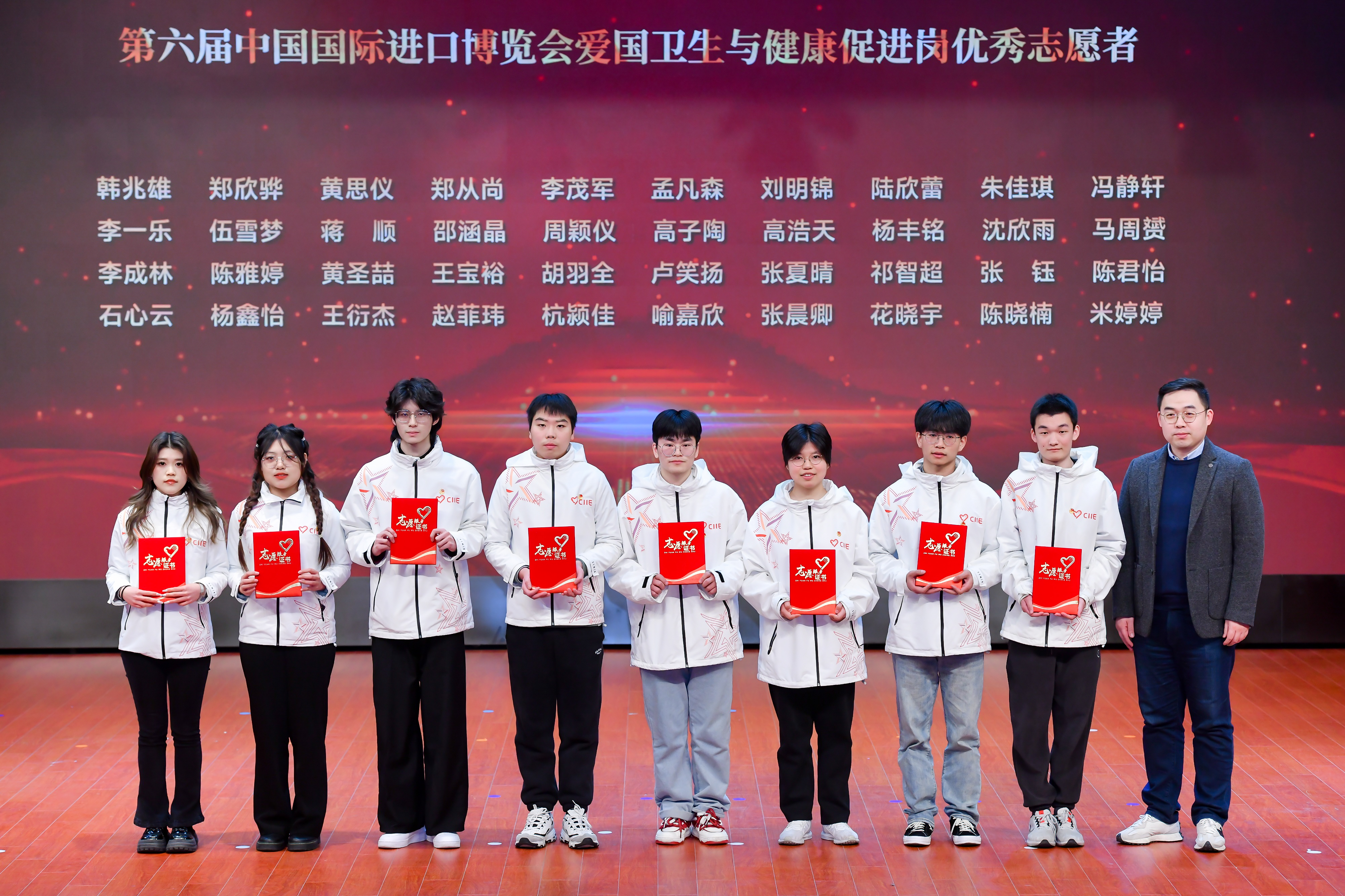 大会播放了我校第六届进博会志愿者视频节选——《健行进博6.0》,健康“小叶子”们厚植理想、锤炼本领,用最美的服务践行“请党放心,强国有我”的青春誓言;他们用青春的热忱与激情,为进博会贡献出自己的一份力量,向世界展现出健康学子的靓丽风采。