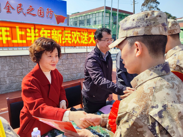 唐红梅表示,今年是新中国成立75周年,是实施“十四五”规划的攻坚之年,也是开创国防动员事业高质量发展新局面的起步之年,意义重大,影响深远。“鲲鹏展翅九万里,长空无涯任搏击”,她勉励新兵们在部队磨炼意志与品格;“扬帆启航怀壮志,中流击水正当时”,希望新战士们坚持正确的政治方向,加强军政业务学习,把自己培养成为政治合格、军事过硬、作风优良、纪律严明的优秀军人;“征途漫漫、唯奋斗者先”,祝愿新兵们在部队不断取得进步,为国防事业建功立业,在新的人生征途上乘风破浪、大展宏图!