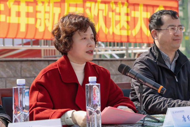仪式上,罗瑾琰汇报了学校2024年上半年征兵工作情况。2024年是我国义务兵服现役政策施行“一年两征”的第四年,在校党委的领导和各学院的配合下,武装部坚持宣传教育和征兵工作两不误,做实预征对象跟踪教育管理,通过广泛宣传动员,2024年上半年最终有13名男生步入军营,年度任务完成率76.5%。严格按照征兵工作“五率”要求保质保量完成2024年上半年我校的征兵任务。