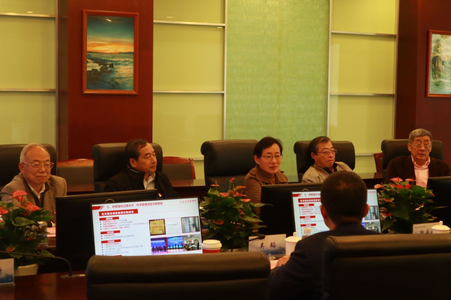 退休局级干部郑沈芳、陈小冰、沈国芳、贾万樑、郦鸣阳在会上作交流发言。交流环节中,老领导就进一步坚持立德树人培养健康优秀人才、提升学校社会影响力、推动前沿项目科研创新、高层次干部人才培养等方面提出意见建议。