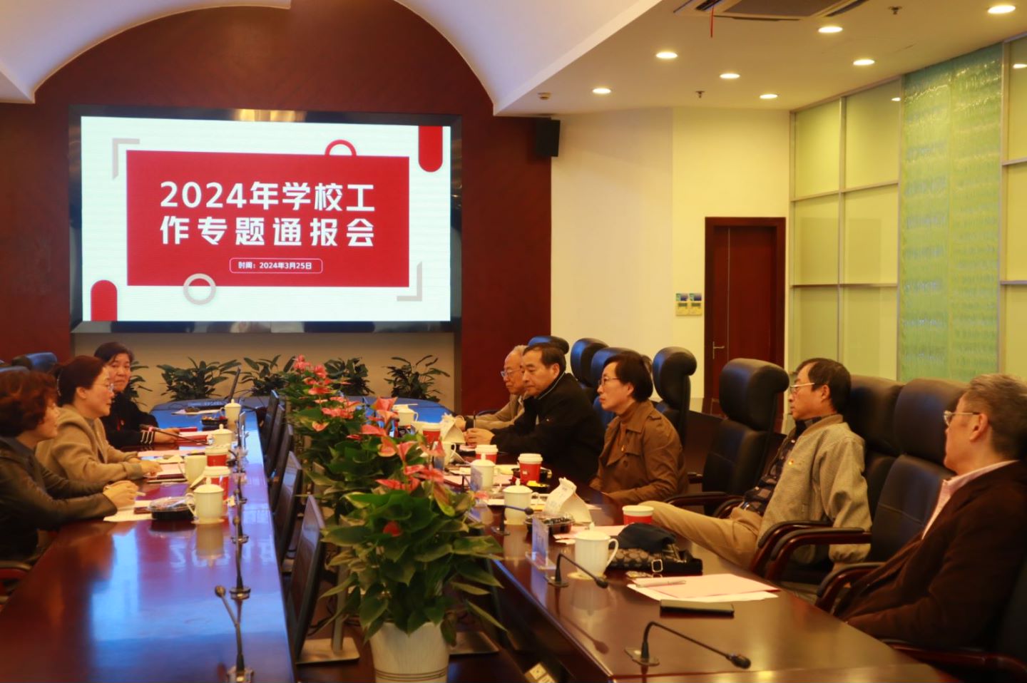 3月25日下午,学校在北苑1号楼108会议室召开2023年老干部校情通报会,校党委书记郭永瑾出席并讲话,校长吴韬作学校情况通报,全体校领导出席并亲切慰问老干部,退休局级干部、离退休工作部负责人及工作人员参加会议,校党委副书记、副校长唐红梅主持会议。