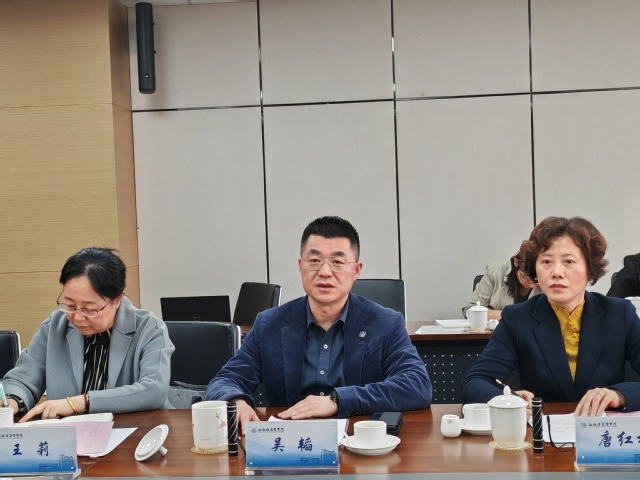 吴韬介绍了学校历史沿革、科研平台、教育教学、国际交流、产学合作、学科建设等方面情况。他强调,学校坚持“高水平、全健康、国际化、应用技术型医学高校”的办学目标定位,坚持“医工结合、医养结合、医保结合”的发展方向,助力健康中国战略实施和健康上海建设,主动答好教育强国建设两个“先行先试”实践命题。