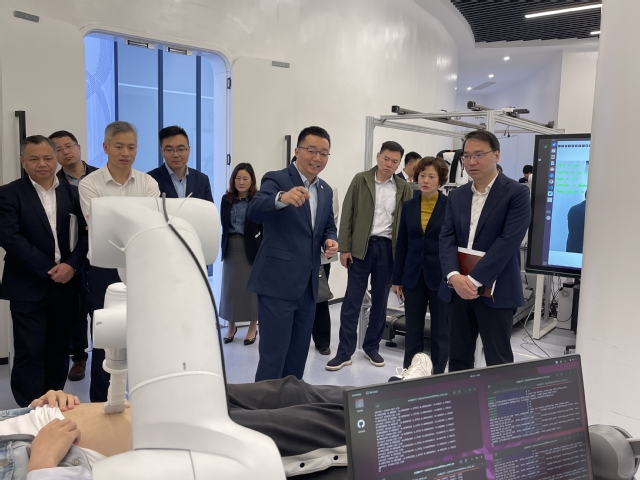 会前,唐红梅陪同崇明区一行参观了上海市智能医疗器械与主动健康协同创新中心。