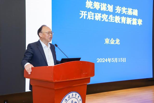 接下来,束金龙教授以“统筹谋划 夯实基础 开启研究生教育新篇章”为主题作大会报告。他系统介绍了我国研究生教育、学科专业建设的历史和现状,从“双一流”建设、学科评估以及学位与研究生教育改革等方面,阐述了在研究生教育中“质量为先”的重要性,并对研究生导师队伍建设给出建议。