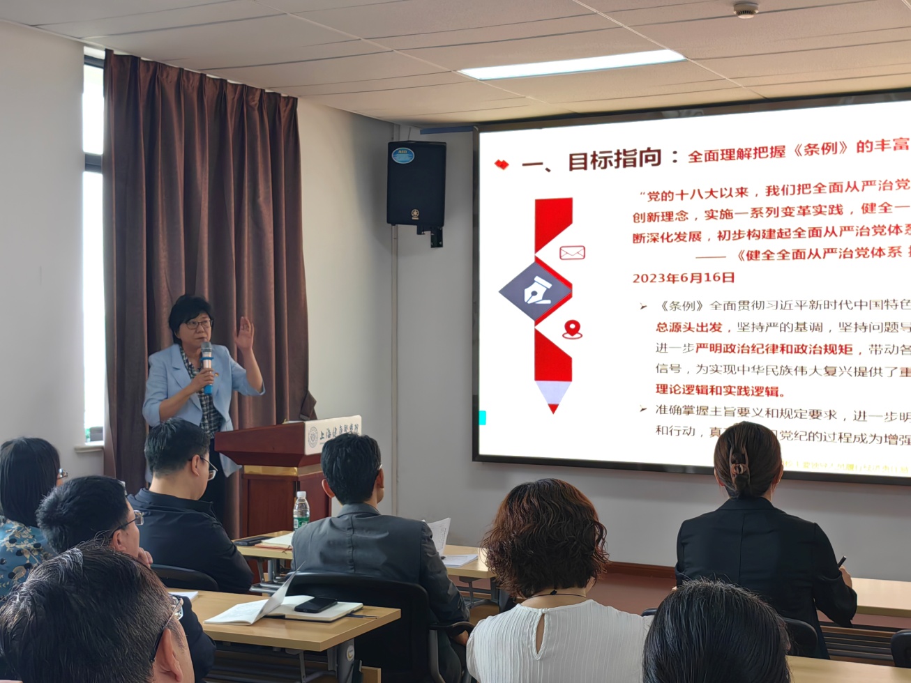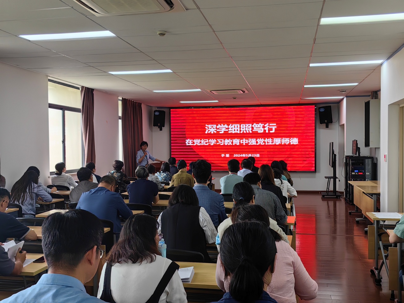 党规党纪刻心间,气正风清路不偏。与会教师表示,将以此次党纪学习教育为契机,把党纪学习内化为提升党性修养、砥砺政治品格的过程,让党纪成为“日用而不觉”的言行准则,推动党纪学习教育入脑入心、走深走实,潜心教书育人当好“大先生”,践行好为党育人、为国育才的光荣使命,为全面建设社会主义现代化国家、全面推进中华民族伟大复兴贡献自己的力量。