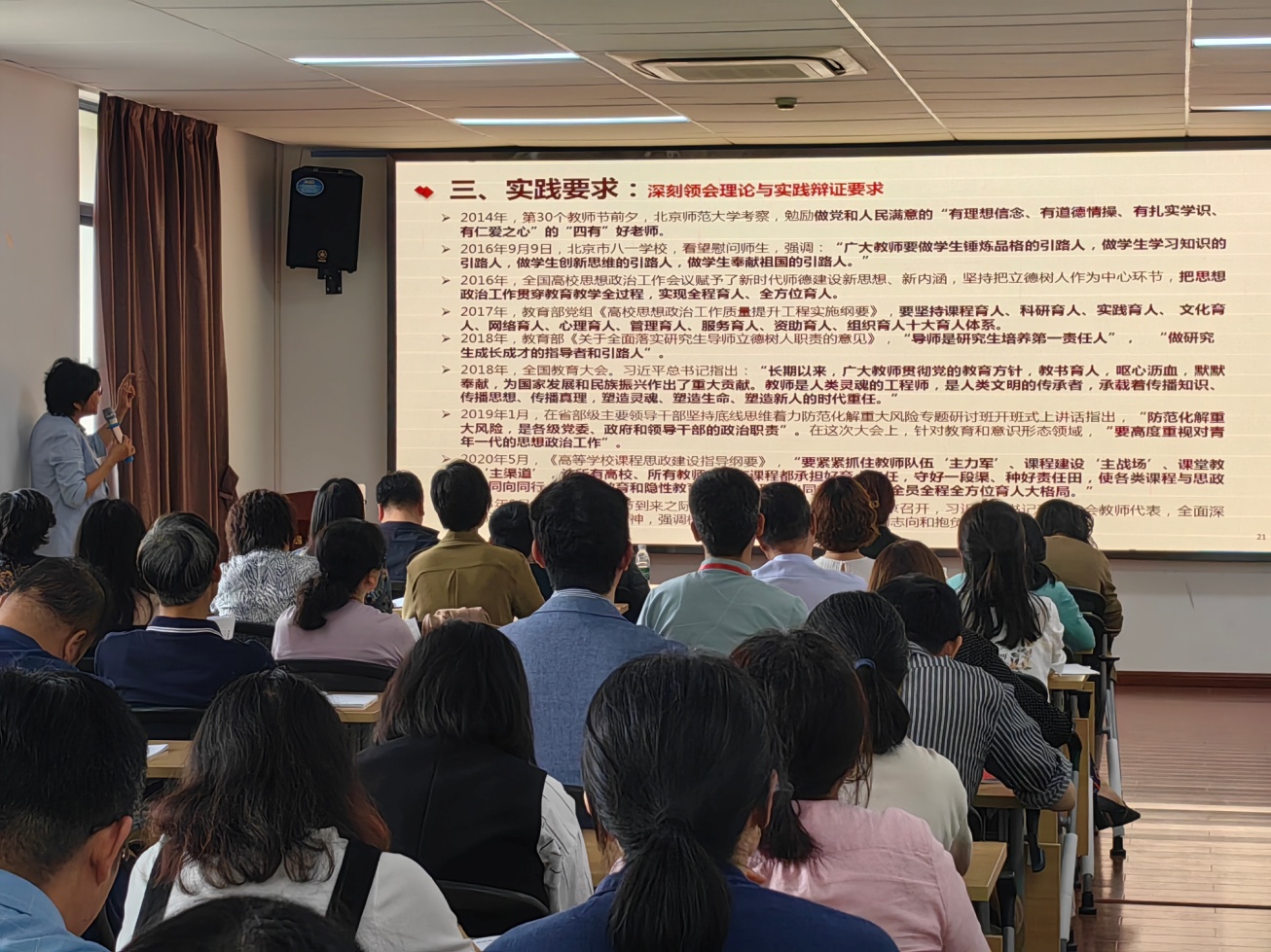 最后,在“实践要求:厚师德育新人”部分,于莹基于“办好人民满意的教育”和“教育强国的时代要求”,详细介绍学校在习近平总书记关于教育的系列重要讲话精神和党中央关于师德师风建设的文件精神的指导下,从建立健全校院两级师德师风评议体系、规范教师履职履责行为、开展师德师风培训助力教师育德能力提升、注重师德师风评价和督察、积极选树师德典型等方面深化强党性厚师德、构建师德师风建设长效机制的具体实践与探究,希望全体党员教师深刻领会理论与实践的辩证要求,树立“躬耕教坛、强国有我”的志向和抱负。