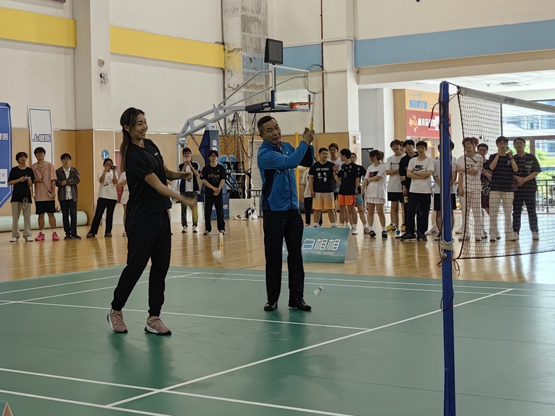 表演赛后,我校师生向李文珊女士询问了她从事羽毛球运动的初衷和发展的历程,李文珊回顾自身的经历用幽默的语言向在场师生传递了坚持、乐观、自律的职业道路经验,博得了大家热烈的掌声。