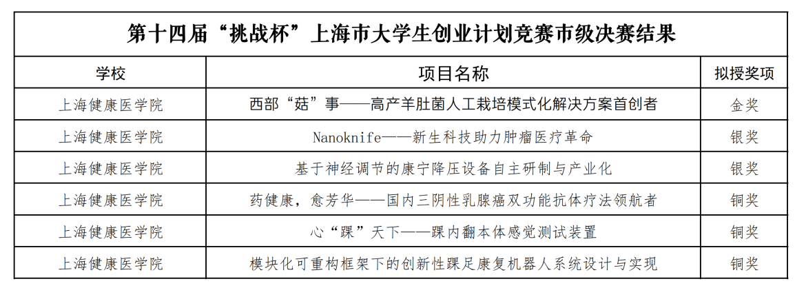 6月29日至30日,第十四届“挑战杯”上海市大学生创业计划竞赛市级决赛于东华大学(延安校区)举行。本届“挑战杯”由共青团上海市委员会、上海市教育委员会、上海市科学技术委员会、上海市人力资源和社会保障局、上海市科学技术协会、上海市学生联合会共同主办,东华大学承办。我校参赛团队在共74家学校的1131个项目中脱颖而出,最终荣获一金两银三铜的优秀成绩,创历史最好成绩。