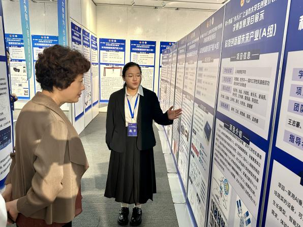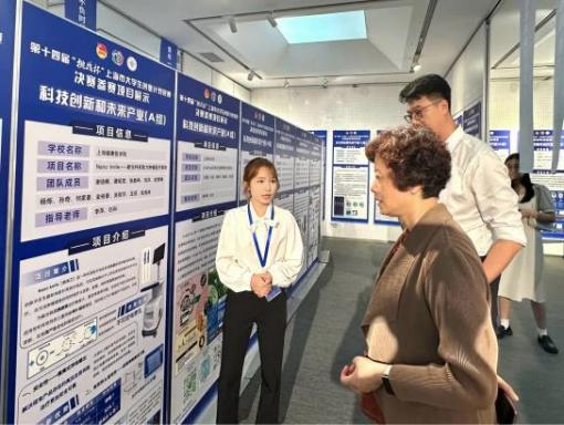 本次“挑战杯”上海市大学生创业计划竞赛市级决赛阶段,校党委副书记、副校长唐红梅、校团委书记马志波一同亲临现场,与参赛团队亲切交流,仔细聆听团队成员的项目介绍与成果报告,并对团队的创新精神与实践能力给予了高度肯定与鼓励。