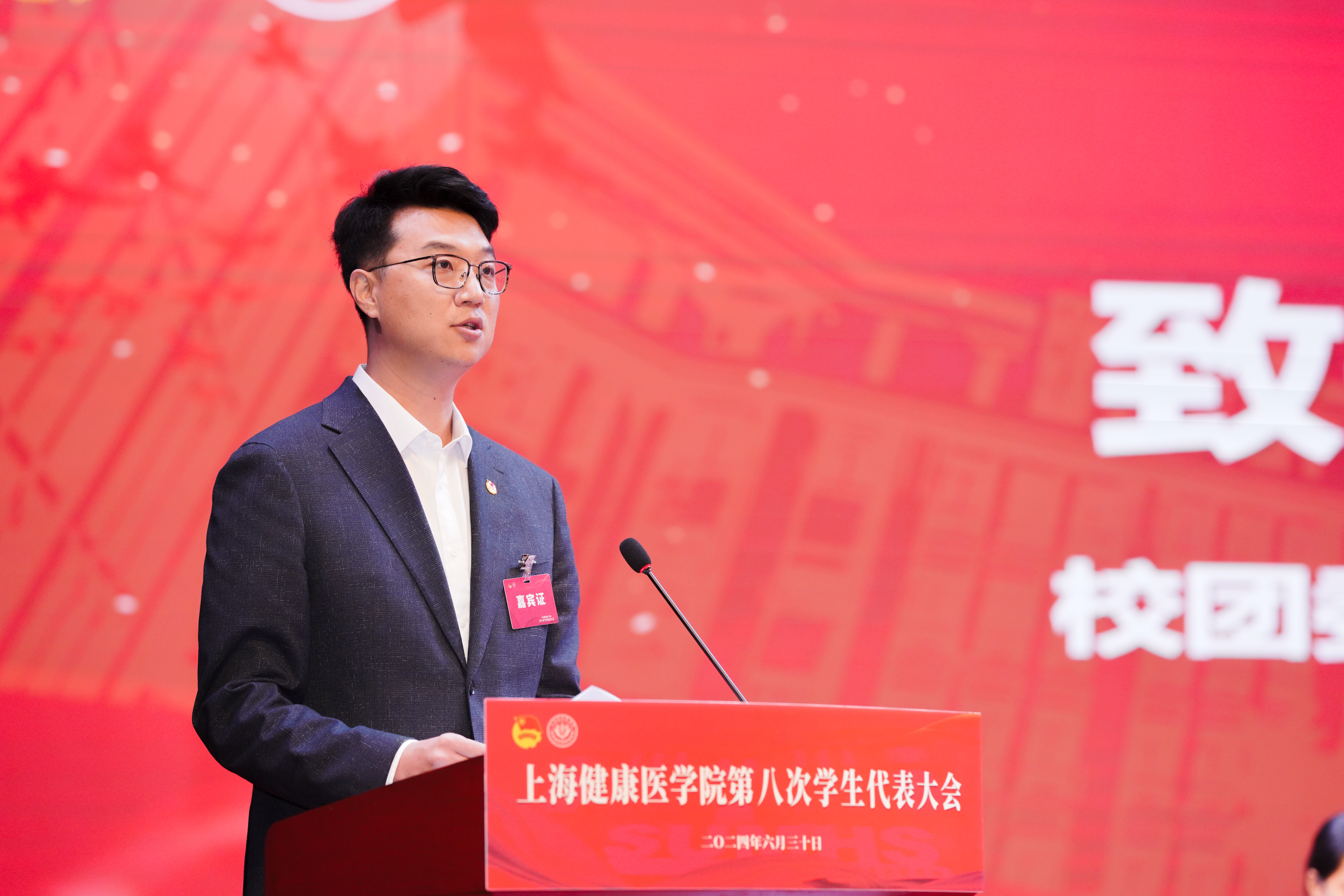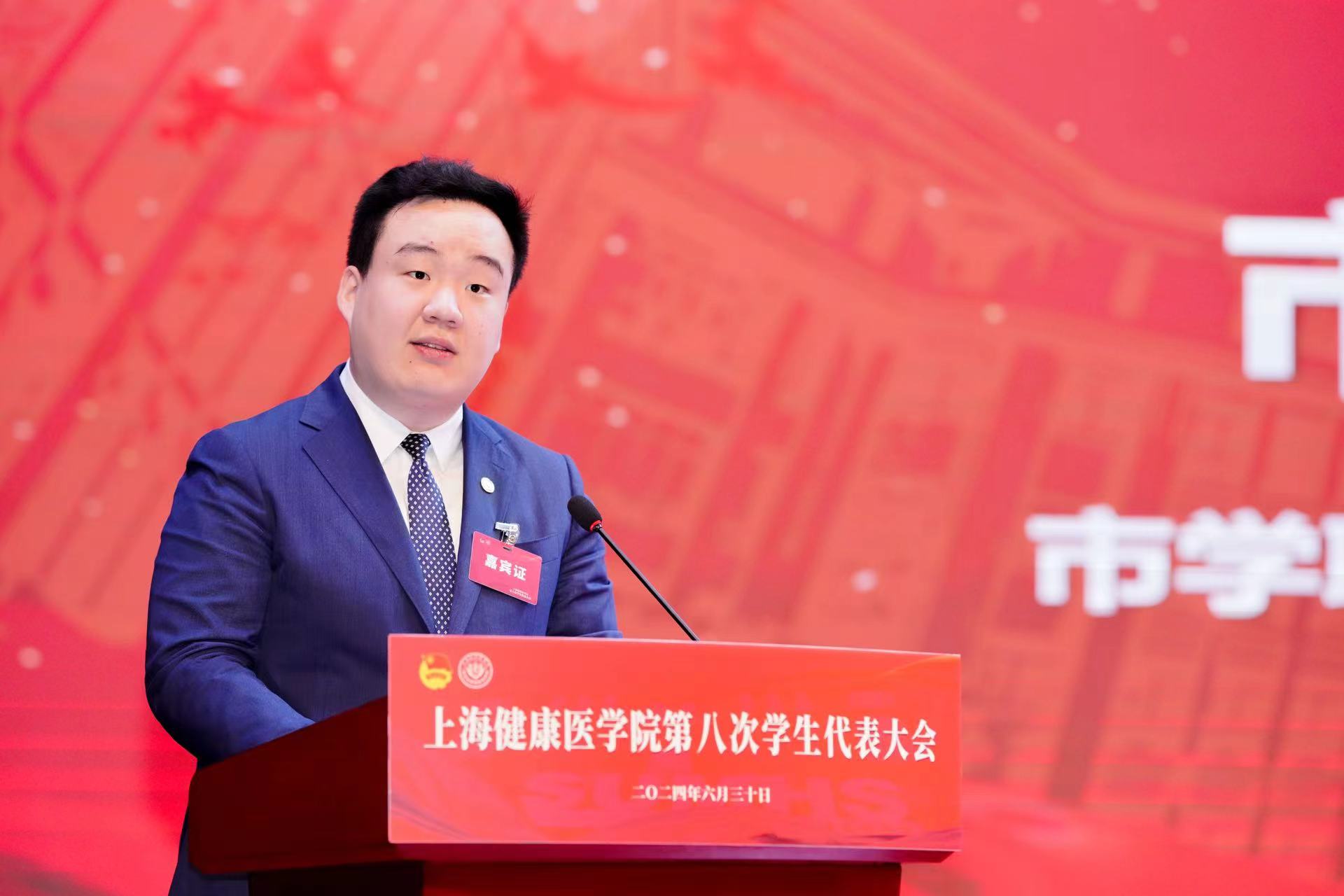 6月30日,上海健康医学院第八次学生代表大会在北苑1号楼400人报告厅正式拉开帷幕。校党委组织部副部长张建中、上海市学联驻会执行主席杨昀斌、校团委书记马志波、各学院团总支书记、沪上各兄弟高校代表、第四届常任委员会委员以及第七届学生联合会主席团成员出席,来自我校113名学生代表参加大会。