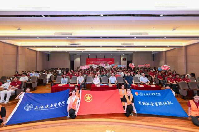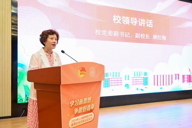 7月9日下午,上海健康医学院“学习新思想 争做好青年”2024年暑期社会实践出征仪式在北苑1号楼200人厅举行。校党委副书记、副校长唐红梅,共青团上海市委员会学校工作部副部长李卓,浦东新区团区委学生工作部部长、教育局团工委书记饶之琛,学工部部长童清,学工部副部长于杨和校团委书记马志波出席活动,各学院党总支副书记、团总支书记及各团队师生代表参加出征仪式。