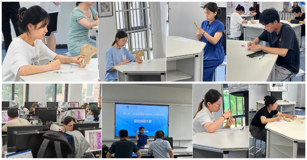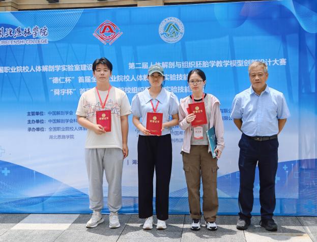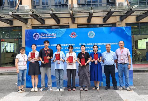 2024年7月13日至17日,首届全国职业院校人体解剖与组织胚胎学实验技能大赛在湖北恩施举办,基础医学院李志宏、顾峻老师带领我校学生9人参加了大赛本科组决赛,获得组织胚胎学赛道一等奖1项、三等奖2项,系统解剖学赛道一等奖1项、二等奖5项。