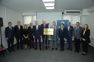 8月23日,代表团访问巴尼亚卢卡大学。在波黑塞族共和国科技与教育部部长Željko Budimir、卫生部副部长Milan Latinović、巴尼亚卢卡大学校长Radoslav Gajanin、副校长Dalibor Kesić、医学院院长Ranko Škrbić等领导和嘉宾以及众多新闻媒体的见证下,两校联合共建“中国长三角——巴尔干半岛生物医药国际技术转移协同创新中心”海外分中心揭牌仪式在巴尼亚卢卡大学举行;Radoslav Gajanin校长表示:去年,我与贵校吴韬校长进行了多次深入的交流,特别是去年我们访问上海健康医学院期间,看到了通过学科交叉创新提升医疗质量,改善医疗服务的最新技术解决方案,这些不仅让我们对贵校有了更深的了解,也促成了我们在多个方面达成共识、展开合作打下了良好基础。汤磊表示:分中心的成立将多方面积极推动两校在科教创新、科研项目联合申报、师生互访交流及培训、学生国际联合培养、先进技术转移转化及创新成果应用示范等领域的合作,为促进中国与波黑等巴尔干半岛“一带一路”国家更高水平、更深层次的合作做出新贡献。
