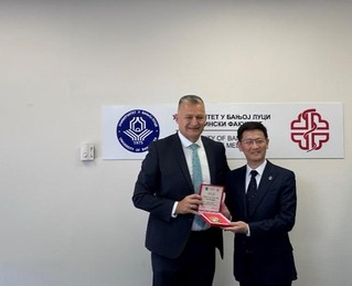 随后,代表团一行与Radoslav Gajanin校长、Dalibor Kesić副校长、Ranko Škrbić院长等进行了会晤。双方就下一步协同创新中心海外分中心在巴尼亚卢卡大学的建设工作、实施计划进行了充分交流,并就未来两校以优秀教师互访互聘、硕士博士联合培养、重大科研项目申报、临床医学人才培养中师生交流等为切入点,全力推动分中心建设工作加快落实落地达成共识。