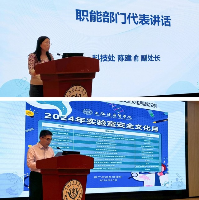 邢寰宇首先感谢学校各部门、学院对实验室安全工作的大力支持和配合,并介绍了2024年实验室安全文化月的活动方案。科技处副处长陈建俞代表职能部门发言,她介绍了我校科研实验室的基本情况,强调实验室安全在科研工作中的重要性,要强化红线意识、底线思维,筑牢实验室的安全屏障。