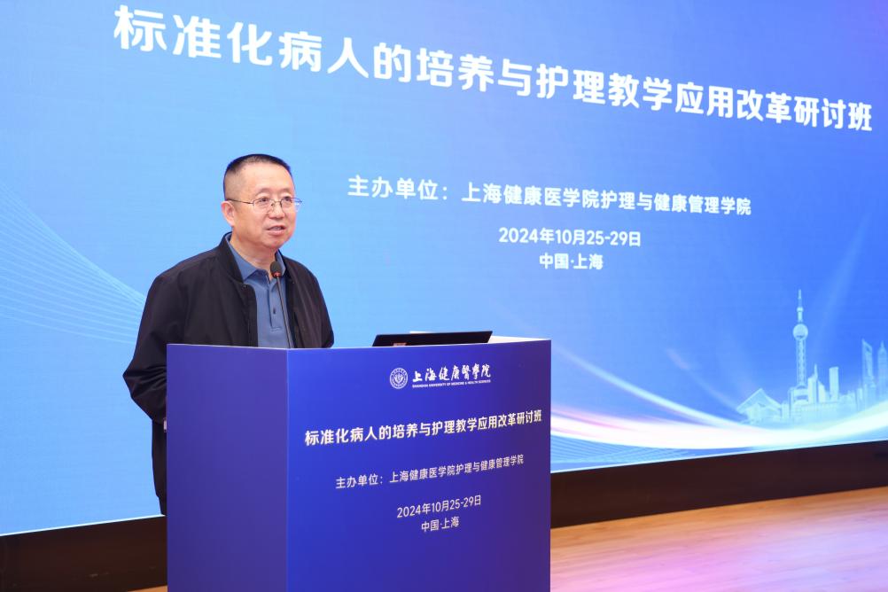 2024年10月26日上午,国家级继续医学教育项目《标准化病人的培养与护理教学应用改革研讨班》在我校开班。上海健康医学院党委副书记、副校长唐红梅作主旨报告,护理与健康管理学院院长朱爱勇出席开班仪式并致辞。