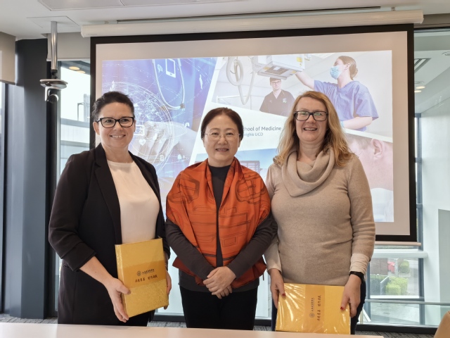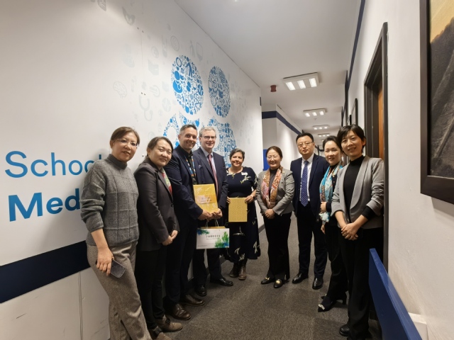 在都柏林大学访问期间,郭永瑾会见都柏林大学医学院国际关系部主任Margaret Tiuchta,都柏林大学国际部工作人员Joycelyn带领团组参观了都柏林大学校园。作为一所研究型大学,以及爱尔兰规模最大的高校,都柏林大学医学院代表了爱尔兰医学教育的最高水平,双方就短期医学研究课程、硕士研究生招生、科研合作、师资培训等进行了深入交流。代表团还拜会了都柏林大学爱尔兰中国研究院、孔子学院院长王黎明。郭永瑾与王黎明围绕近年来中爱两国教育文化交流情况以及今后促进两校师生交流与学术合作等方面的举措进行了交流。