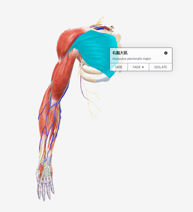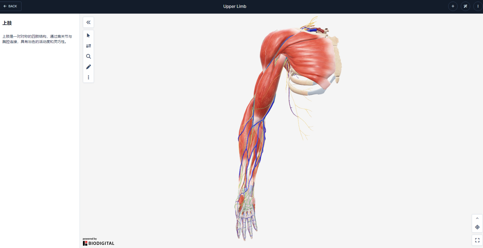 示例:选择局部解剖——上肢,进入上肢解剖3D图,图像可以放大、缩小、旋转。
