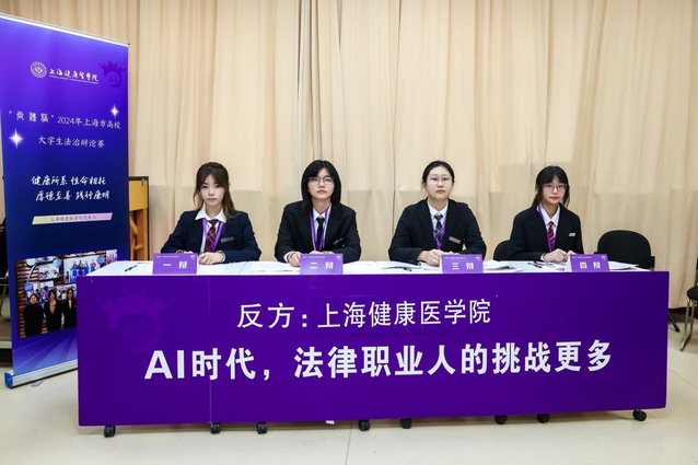 同时,学校还积极组织学生参加“尚法杯”2024年上海市高校大学生法治辩论赛,围绕“AI时代,法律职业人的挑战更多”为题,展开激烈探讨。我校代表队的各位辩手以法思辨,展现出深厚的学科素养和专业功底,赢得认可。一辩王诗怡同学获优秀辩手奖,指导教师付卓婧获优秀领队教练奖。