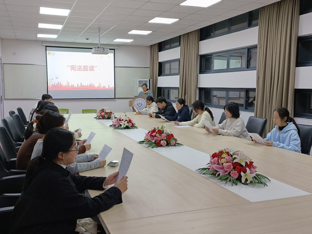 12月4日,校团委组织同学在东苑3号楼大学生发展中心211会议室举行了“宪法晨读”活动。大家整齐划一、声音洪亮,诵读宪法。通过诵读,进一步加深对宪法的理解认识。晨读后,与会同学活动以一首《宪法伴我们成长》的歌曲传唱后圆满结束,同学们用歌声增强了宪法学习的感染力。活动不仅加深了同学们对宪法的理解和认识,更为校园法治文化建设注入了新的活力。
