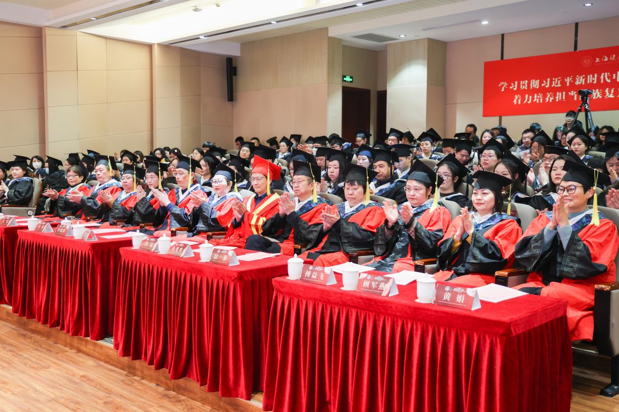 最后,汤磊代表学校向237名毕业生表达了诚挚的祝福并对1600名2025级新生表示欢迎,同时提出了殷切期望。他强调毕业生们在未来职业生涯中要继续保持敬业精神和专业追求,持续追求知识,提升个人能力。同时,要求新生要树立理想和信念,保持对医学的热爱与执着,为“健康上海”“健康中国”贡献自己的青春力量。