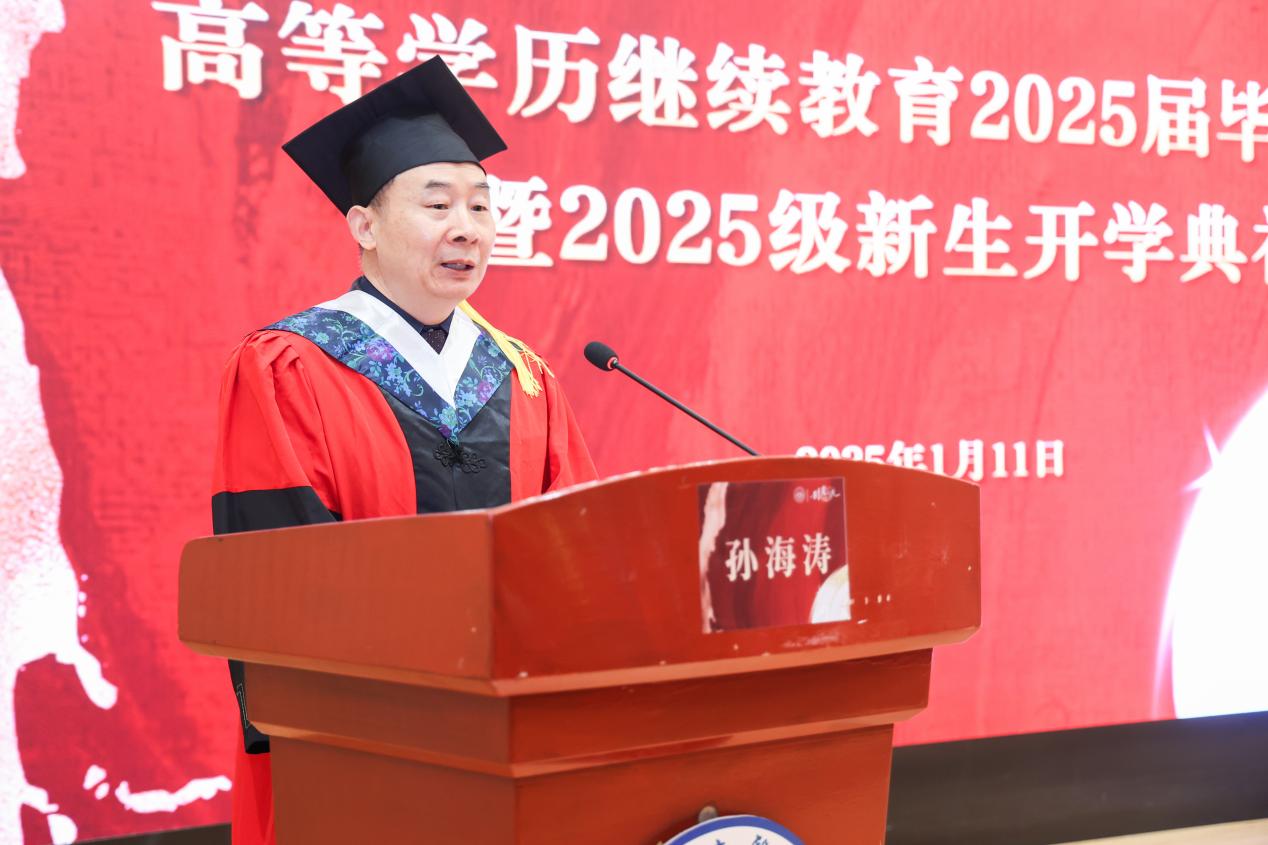 1月11日上午,上海健康医学院高等学历继续教育2025届毕业典礼暨2025级新生开学典礼在北苑200人报告厅隆重举行。上海健康医学院副校长汤磊、护理与健康管理学院院长朱爱勇、药学院院长徐一新、医学技术学院党总支书记姚谷芳、医学影像学院院长李晓欧等学院党政负责人、各教学点负责人、班主任、毕业生代表和新生代表参加典礼。同时,典礼在校官方视频号进行了同步直播。会议由继续教育学院副院长孙海涛主持。
