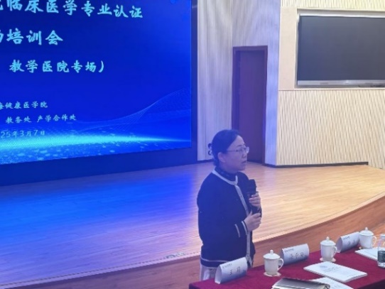 王莉向全体参会单位发出动员令:一要提升政治站位,将认证工作作为建设教育强国的具体实践,要求各附属医院建立“主要领导牵头、专班推进”工作机制;二要坚持问题导向,对照标准建立“自查-整改-提升”动态机制,重点撰写医院自评报告,完善临床教学档案标准化建设,形成认证专项台账;三要强化责任担当,构建校院两级联动、医教协同攻坚的工作格局,在推进中加强师资教学能力培训以及对认证工作统一认知。