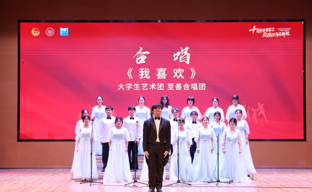大学生艺术团至善合唱团献唱歌曲《我喜欢》,用歌声表达对青春与理想的热爱。活动在全体师生奏唱团歌的庄严氛围中圆满落幕。