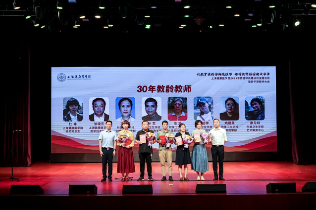 9月25日下午,上海健康医学院在北苑1号楼400人报告厅隆重举行“以教育家精神铸魂强师 谱写教育强国建设华章——上海健康医学院 2025年师德师风建设月主题活动暨新学期教师大会”。大会分“躬耕教坛致敬芳华”“薪火相传赓续初心”“擘画未来共启新程”三个篇章,全体在校校领导、获奖教师代表、30年教龄教师、荣休教师代表、新进教师代表、全体中层干部、师生代表、附属卫校、附属医院代表欢聚一堂,全体师生在线上同步观看大会直播,共同开启新学期新征程。大会由刘一丹老师和季文譞同学主持。