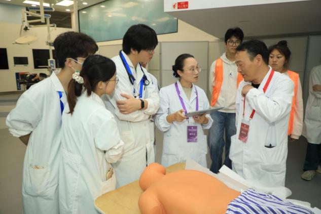 大赛参照全国大学生临床技能竞赛模式,全方位考察选手理论知识、临床技能、临床思维、沟通能力、人文关怀、团队合作、创新能力等各项技能,采取“多站式”、“赛道式”、综合急救以及理论抢答相结合的赛制,模拟临床情景进行。大赛由附属嘉定区中心医院朱堃教授担任裁判长,附属医院临床教师担任考官。