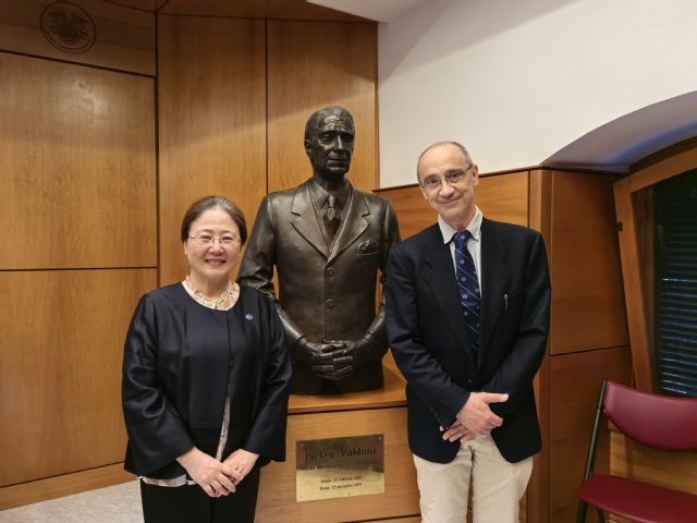 代表团首站访问意大利高等卫生研究院,与院长罗科·贝兰托内教授及多个部门负责人会谈。双方围绕食源性疾病、心血管疾病、公共卫生、老龄化照护及癌症等议题展开讨论,就加强联合培养、科研合作与师生交流达成一致。代表团还访问了意大利国家血液中心与移植中心,了解其运行模式。意大利高等卫生研究院是意大利最高国立医疗卫生科研机构,曾有4位诺贝尔奖获得者在此工作,该院广泛开展国内外教育合作与培训。