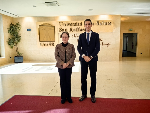 代表团还访问了位于米兰的圣拉斐尔科学研究医院。在与该院国际交流部的会谈中,双方重点探讨了师生短期观摩与实习项目。该医院隶属于意大利第一大医院集团,集诊疗、临床研究和教学于一体的高度专业化、多学科的医疗中心及现代化生命健康中心,其医疗水平在欧洲排名前三,科研经费在欧洲医院中排名第一,获得意大利国家医疗服务体系认证,被认定为“具有科研属性的诊疗和住院机构”,在欧洲医疗界地位显著。圣拉斐尔科学研究医院代表意大利加入欧洲大学-医院联盟,并于2023年担任该联盟主席医院。该医院于1996年创办附属大学圣拉斐尔生命健康大学,设有医学院、哲学院和心理学院,其医学生数量在意大利排名第二,国际生数量位居全意第一。