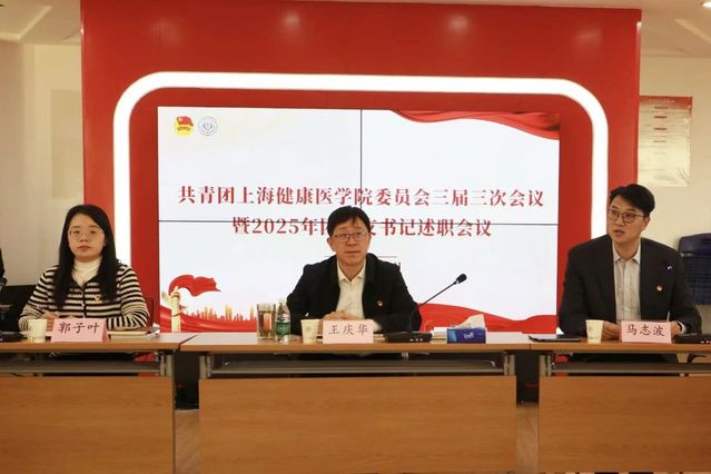 为进一步总结回顾本年度学校共青团工作成效,推动团干部履职尽责能力再提升,谋划下一阶段工作新篇章,12月29日,共青团上海健康医学院委员会三届三次会议暨2025年团总支书记述职会议在北苑1号楼500会议室顺利召开。会议特别邀请中共上海市委党校科社部副主任丁长艳教授到校进行专题授课。校党委副书记、副校长王庆华及共青团上海健康医学院第三届委员会委员出席。会议由校团委书记马志波主持。