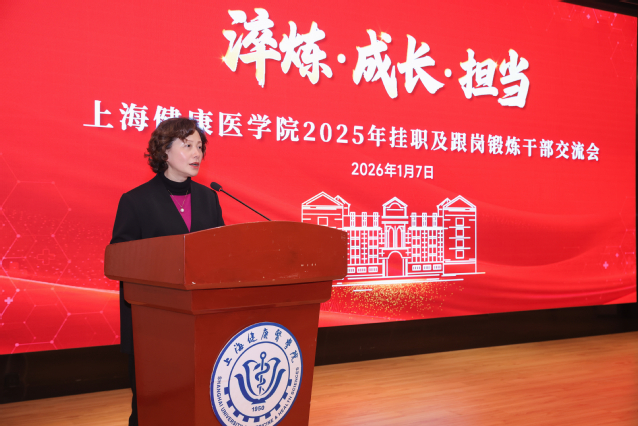 校党委书记郭永瑾作总结讲话,她充分肯定了挂职干部队伍在实践中展现出的初心热忱与扎实成长。她指出,面对“十五五”时期建设高水平应用型医学院校的重要使命,必须建设一支高素质专业化的干部队伍。她围绕三个方面与全体干部深入交流,一是系统梳理近年来学校干部工作的主要做法,强调持续优化“育选管用”全链条机制,突出实绩导向、能上能下,注重来源广泛、多岗锻炼,推进专业化、年轻化,以长效机制激发队伍活力。二是深入领会学习习近平总书记关于干部工作的重要指示精神,坚持把政治标准放在首位,注重在完成急难险重任务、处理复杂问题、应对重大考验中考察识别干部,强调建立崇尚实干、带动担当、加油鼓劲的正向激励体系。三是对干部特别是年轻干部提出明确期望:要进一步开阔视野,通过加强学习培训、推动多岗位历练,打破思维定势,拓宽工作格局;要进一步提升能力,掌握“真本事”,解决“真问题”,既吃透上级政策又结合校情校况,因地制宜制定有效方案,在实践中成长;要进一步强化担当,坚持目标导向、问题导向、结果导向,分工负责、权责一致,要政治过硬、勇于担责,杜绝推诿扯皮;要进一步转变作风,注重多部门协同,强化服务意识,推动管理融入服务,坚守廉洁与安全底线,在工作中履职尽责、积极作为,为建成人民满意的一流应用型医学院校不懈奋斗。