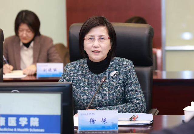 座谈会上,徐徕认真听取了学校在学科建设、人才培养、社会服务等方面的工作汇报,充分认可学校十年来立足办学定位,坚持特色发展,走出了一条独具特色的健康发展之路。她表示,2026年是“十五五”开局之年,生物医药作为三大先导产业之一,也是浦东六大“硬核产业”之一,浦东将朝着生物医药世界产业集群进发,上海健康医学院作为培养应用型技能人才的重要阵地,在康养领域的办学特色与区域需求高度契合。希望双方未来在技能人才培养、科研成果转化、产学研合作、民生服务等方面拓展合作空间,将学校的学科优势、人才优势转化为区域发展动能,共同为浦东打造现代化健康服务体系。