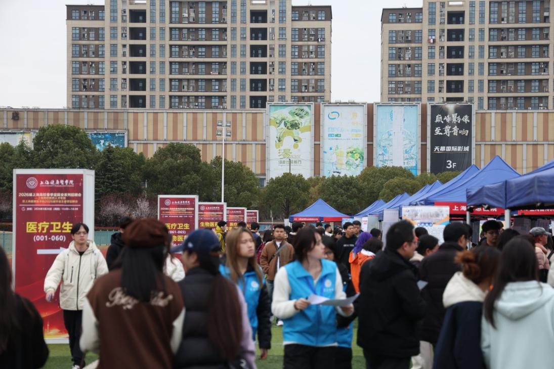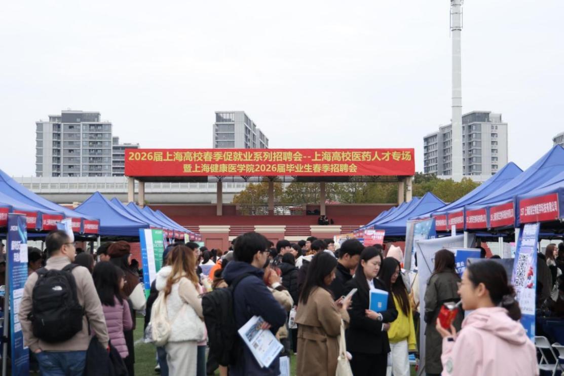 为深入贯彻落实党中央、国务院关于高校毕业生就业创业工作决策部署,助力毕业生实现高质量充分就业,3月26日,2026届上海高校春季促就业系列招聘会——上海高校医药人才专场暨上海健康医学院2026届毕业生春季招聘会在学校北苑田径场顺利举行,超2000名上健医学子以及来自全国125家高校的560多名医学相关专业毕业生参加。