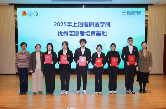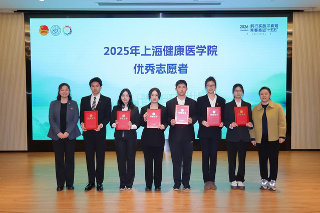 各学院党总支副书记为2025年上海健康医学院优秀志愿者培育基地、优秀志愿者团队、优秀志愿者代表颁奖。