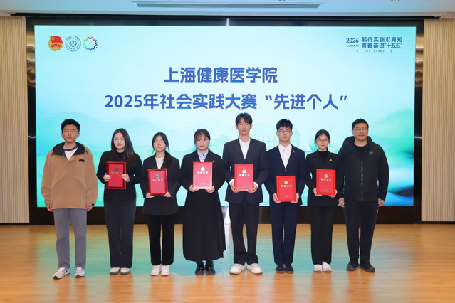 附属医院团委书记为2025年“知行杯”上海市大学生社会实践大赛“先进个人”“优秀指导教师”以及“获奖项目”代表颁奖。