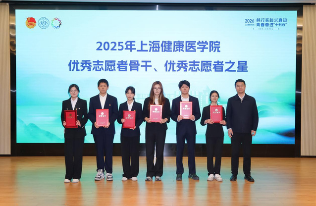 学工部部长、学生处处长童清为2025年上海健康医学院优秀志愿者骨干以及优秀志愿者之星代表颁奖。