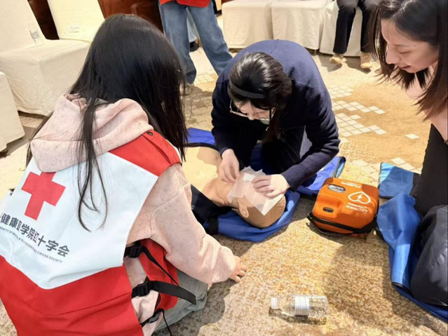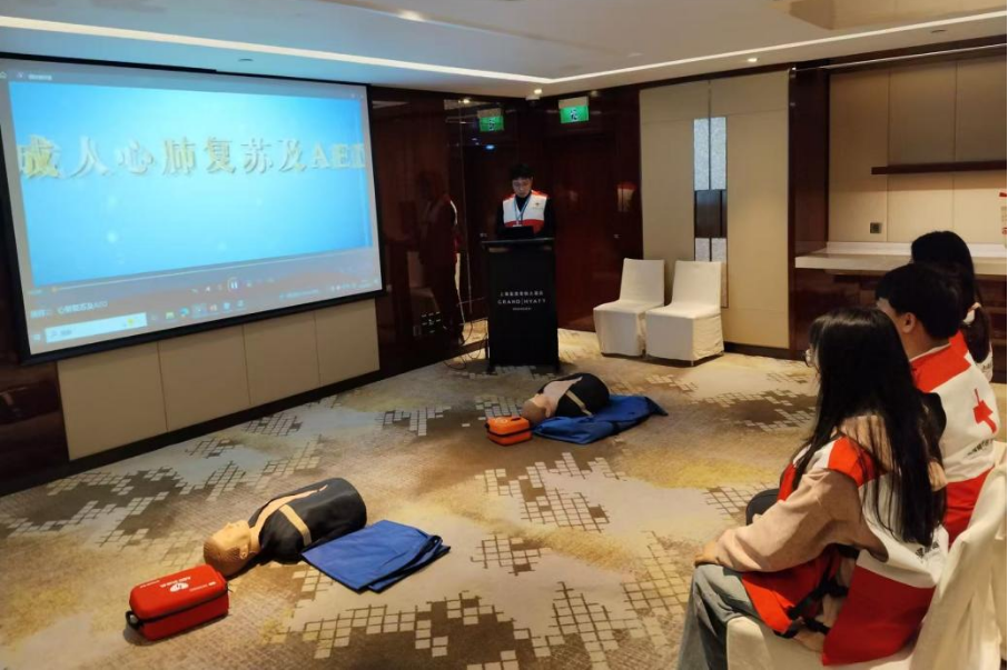 急救技能培训环节中,参训学员先通过线上理论课程,系统掌握心肺复苏术(CPR)、海姆立克急救法等核心急救知识;随后分组开展实操演练,市红十字会教师与校红十字会学生志愿者全程悉心指导、规范动作,确保每位学员熟练掌握关键技能。经理论考核与实操评定合格的学员获颁急救培训结业证书。