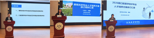 为深化教育综合改革,提升人才培养的精准供给能力,4月15日,我校组织召开2026本科人才培养方案修订汇报暨专家论证指导会(第1场)。校党委副书记、副校长王庆华,副校长汤磊出席会议。会议邀请了上海市眼病防治中心、上海市第一人民医院、上海三联(集团)有限公司、上海市徐汇区口腔医院、维创数齿(上海)医疗技术有限公司、上海沪亮生物医药科技有限公司等单位的行企专家参会指导。学校相关职能部门负责人、各二级学院党总支书记、教学负责人、学工负责人及专业教师参会,会议由汤磊主持。